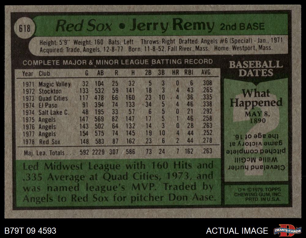 1979 Topps #618 Jerry Remy 4 - VG/EX