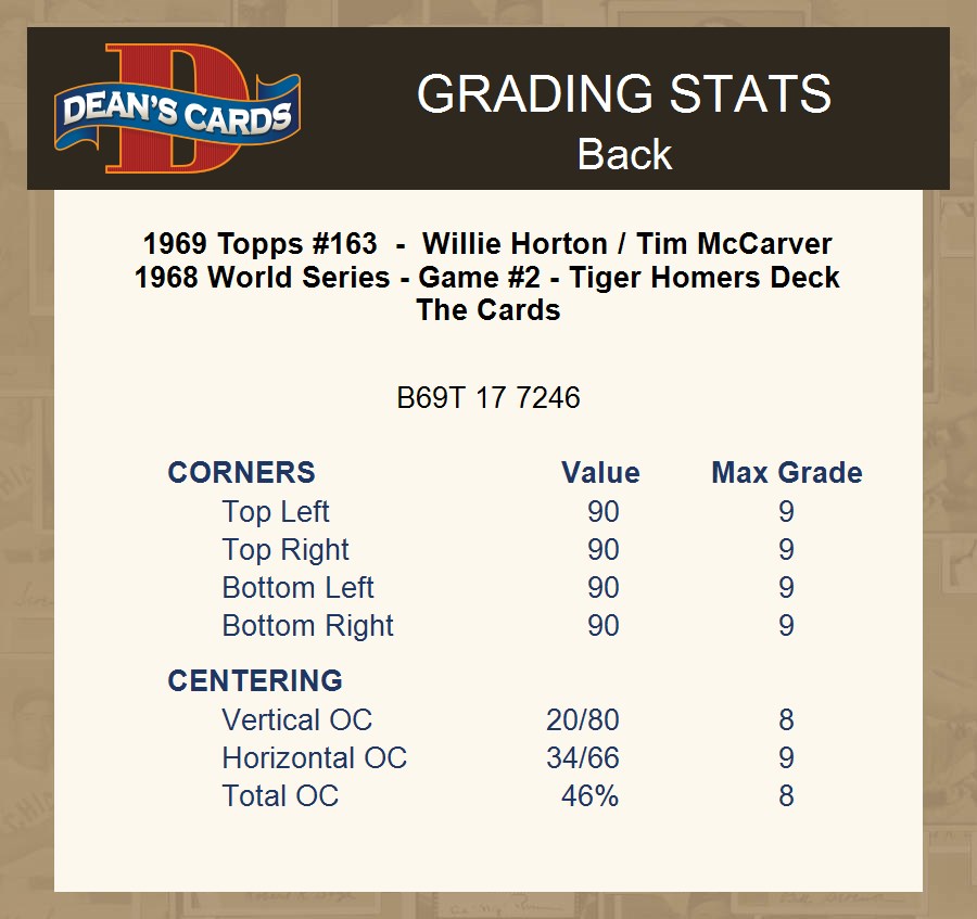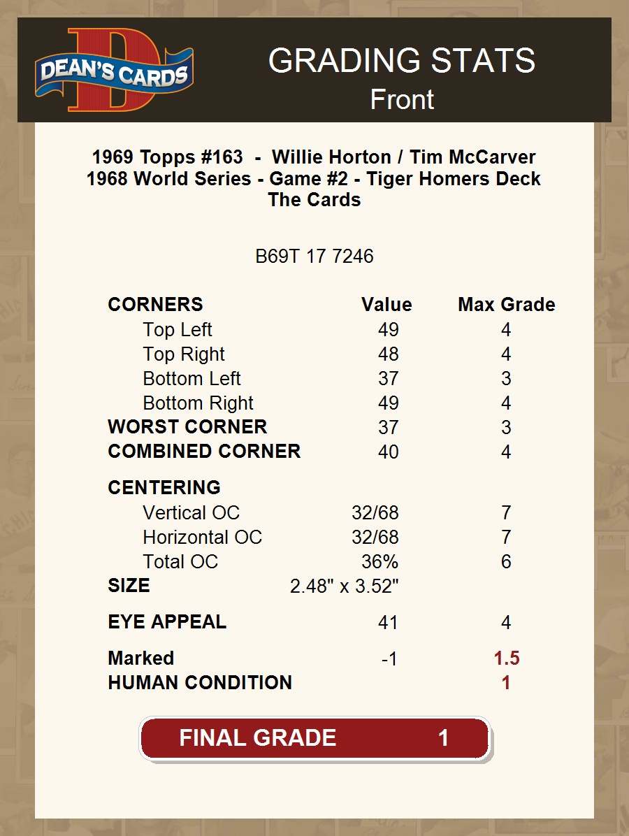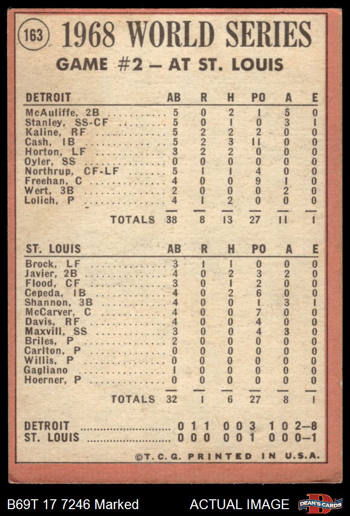1969 Topps #163 - Willie Horton / Tim McCarver 1968 World Series - Game #2 - Tiger Homers Deck The Cards 1 - POOR