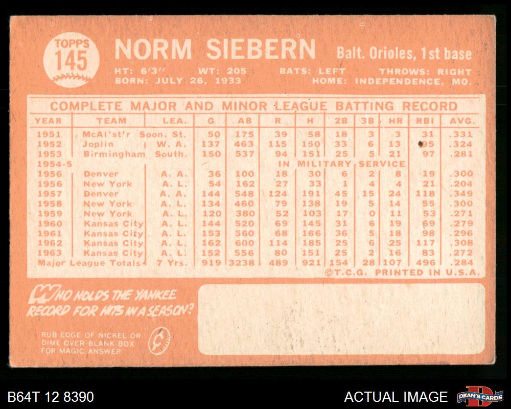 1964 Topps #145 Norm Siebern 4 - VG/EX