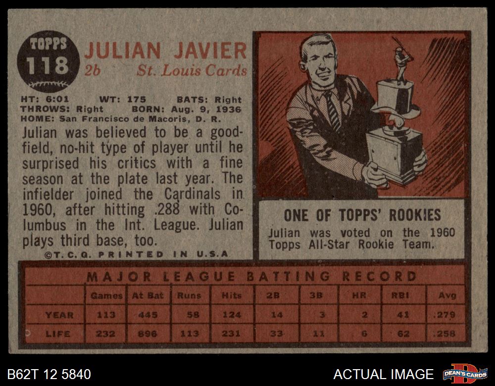 1962 Topps #118 NRM Julian Javier 4 - VG/EX