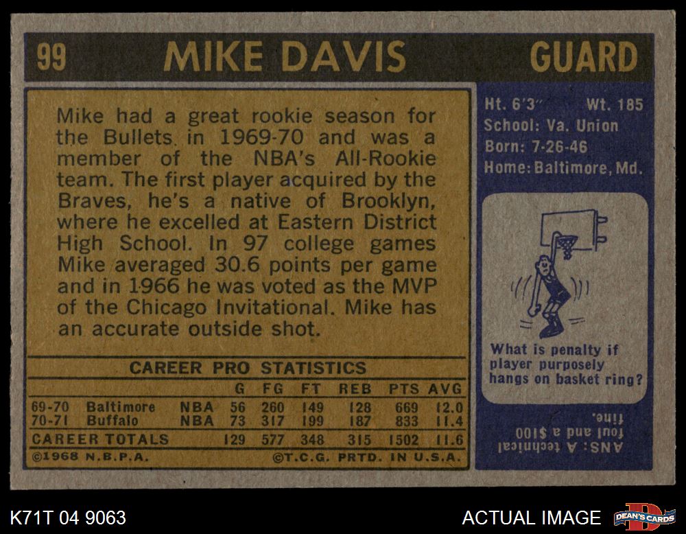 1971 Topps #99 Mike Davis 7 - NM