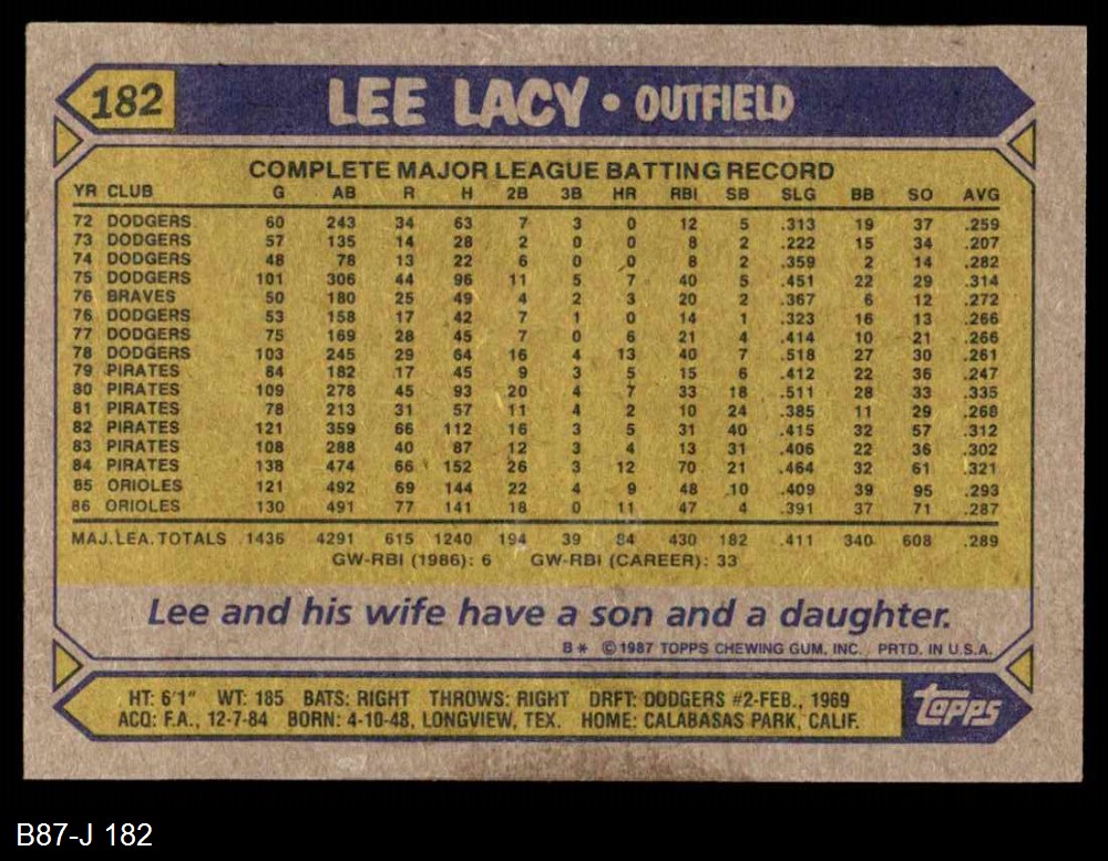 1987 Topps #182 Lee Lacy 8 - NM/MT