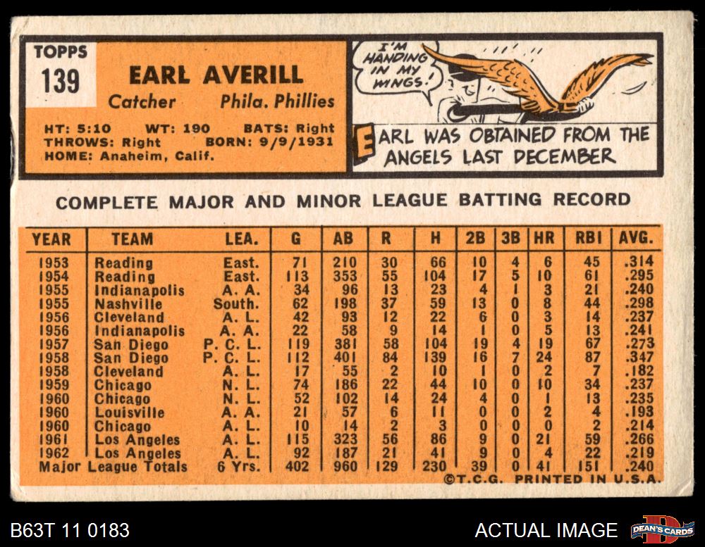 1963 Topps #139 Earl Averill Jr. 2 - GOOD