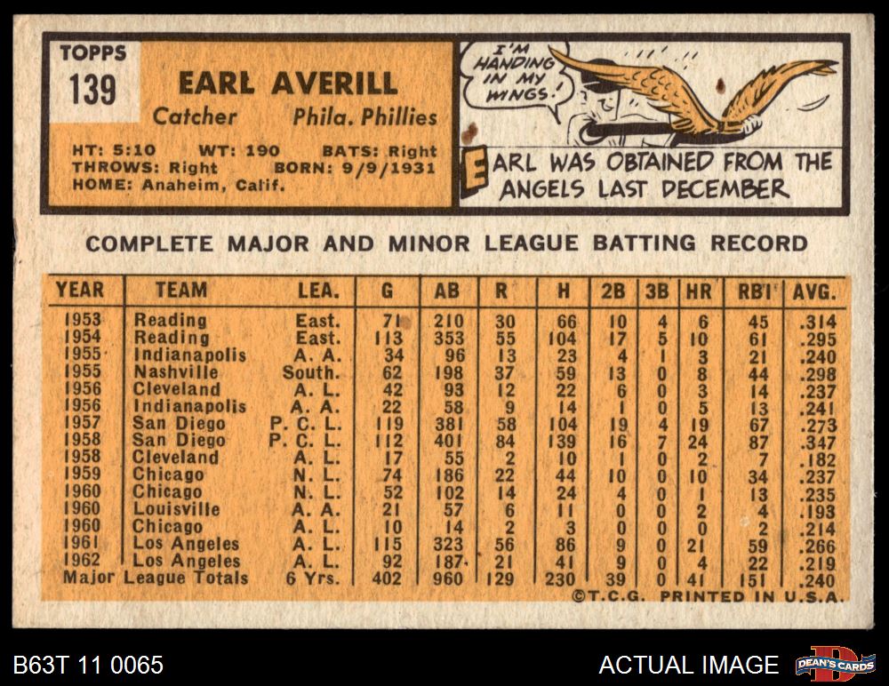1963 Topps #139 Earl Averill Jr. 5 - EX