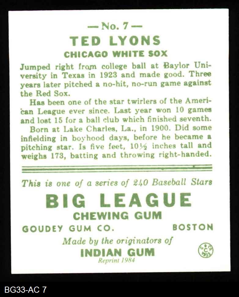 1933 Goudey Reprint (1,598 available)1933 Goudey Reprint White Sox (73 available)