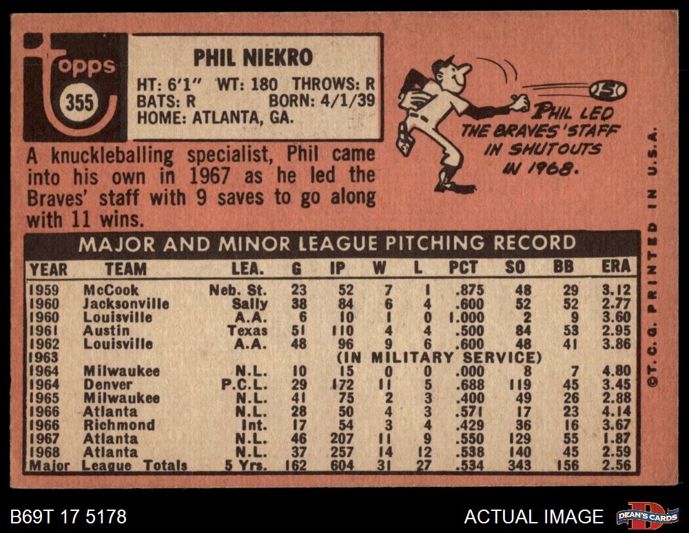 1969 Topps #355 Phil Niekro 3.5 - VG+