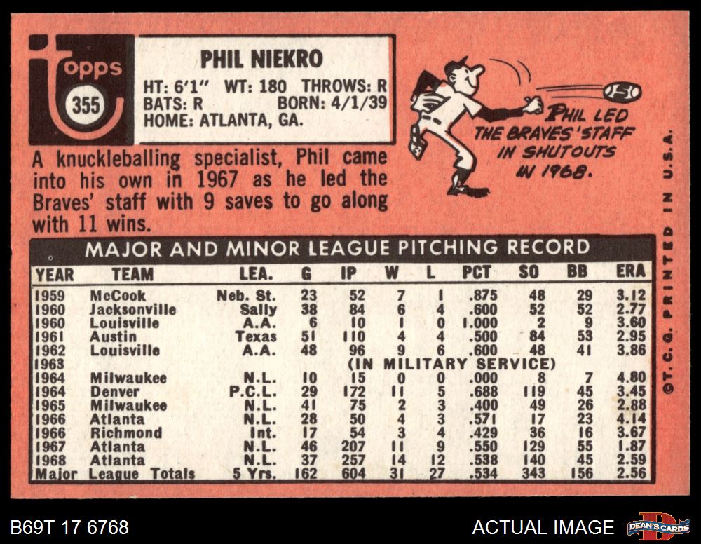 1969 Topps #355 Phil Niekro 6 - EX/MT