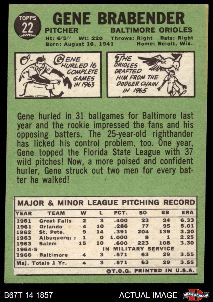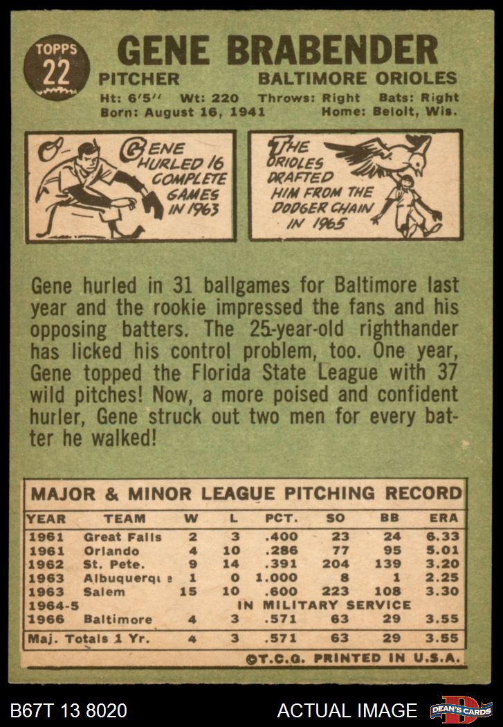 1967 Topps #22 Gene Brabender 4 - VG/EX
