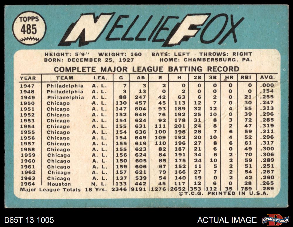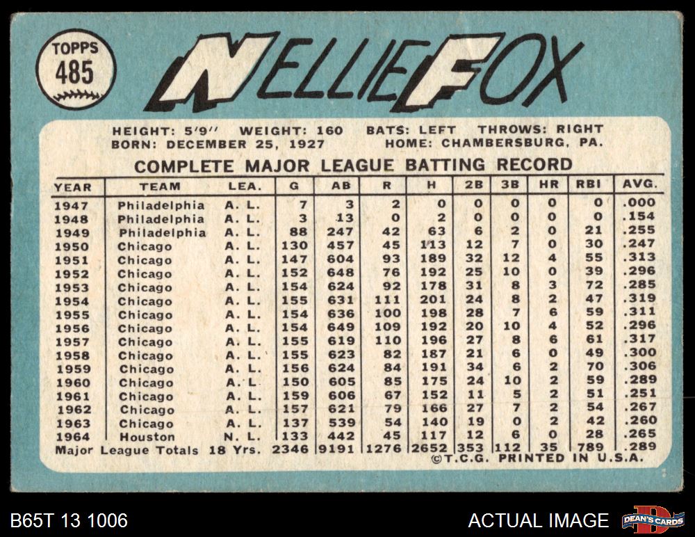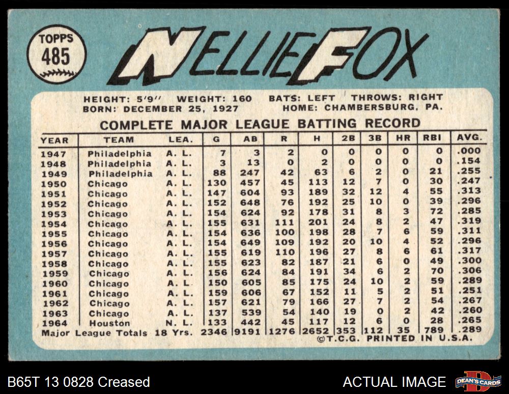 1965 Topps #485 Nellie Fox 2 - GOOD