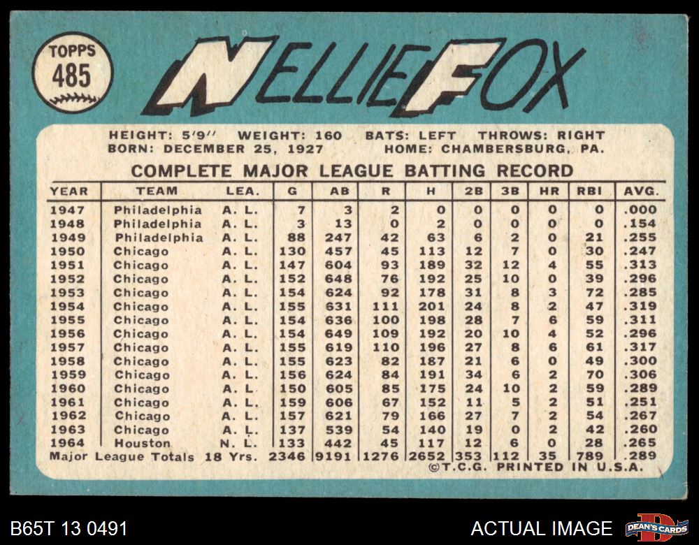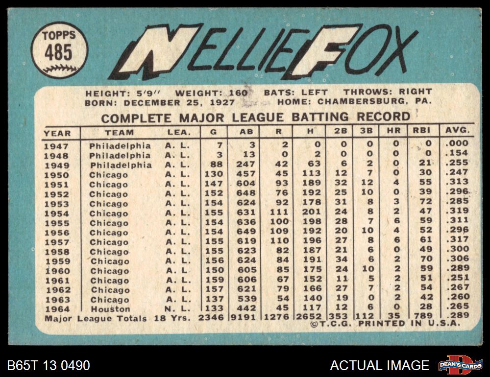 1965 Topps #485 Nellie Fox 4 - VG/EX