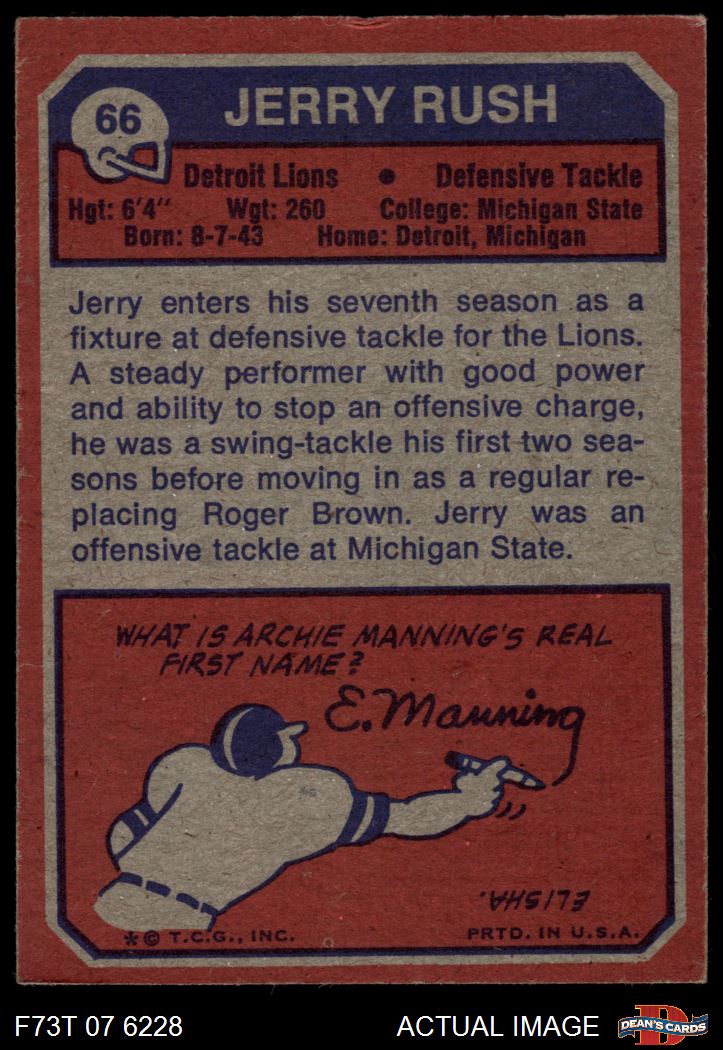 1973 Topps #66 Jerry Rush