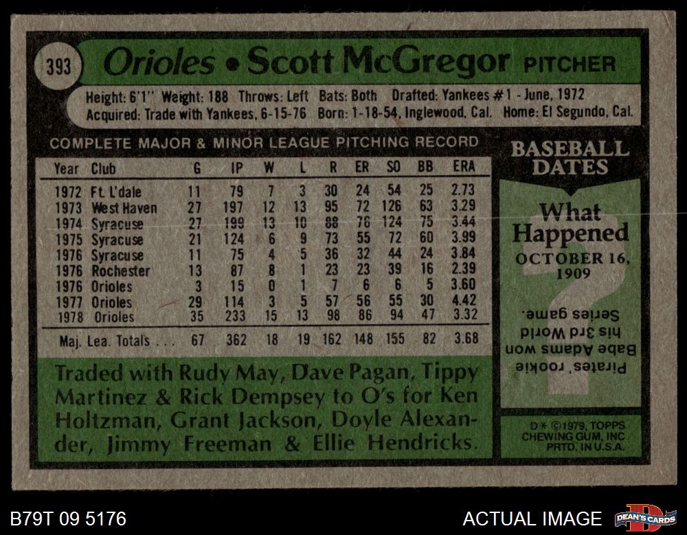 1979 Topps #393 Scott McGregor 5 - EX