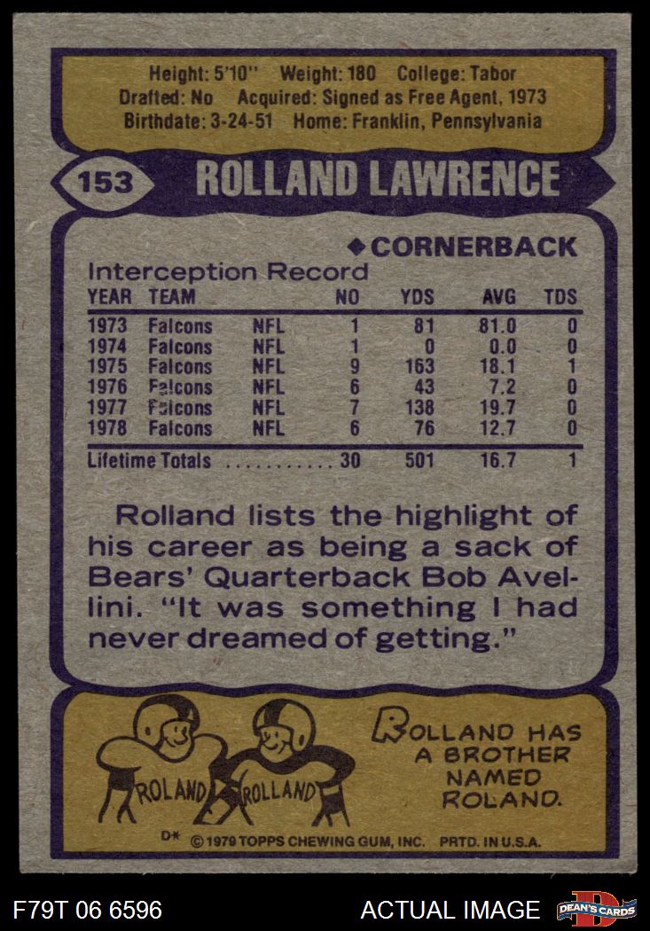 1979 Topps #153 Rolland Lawrence