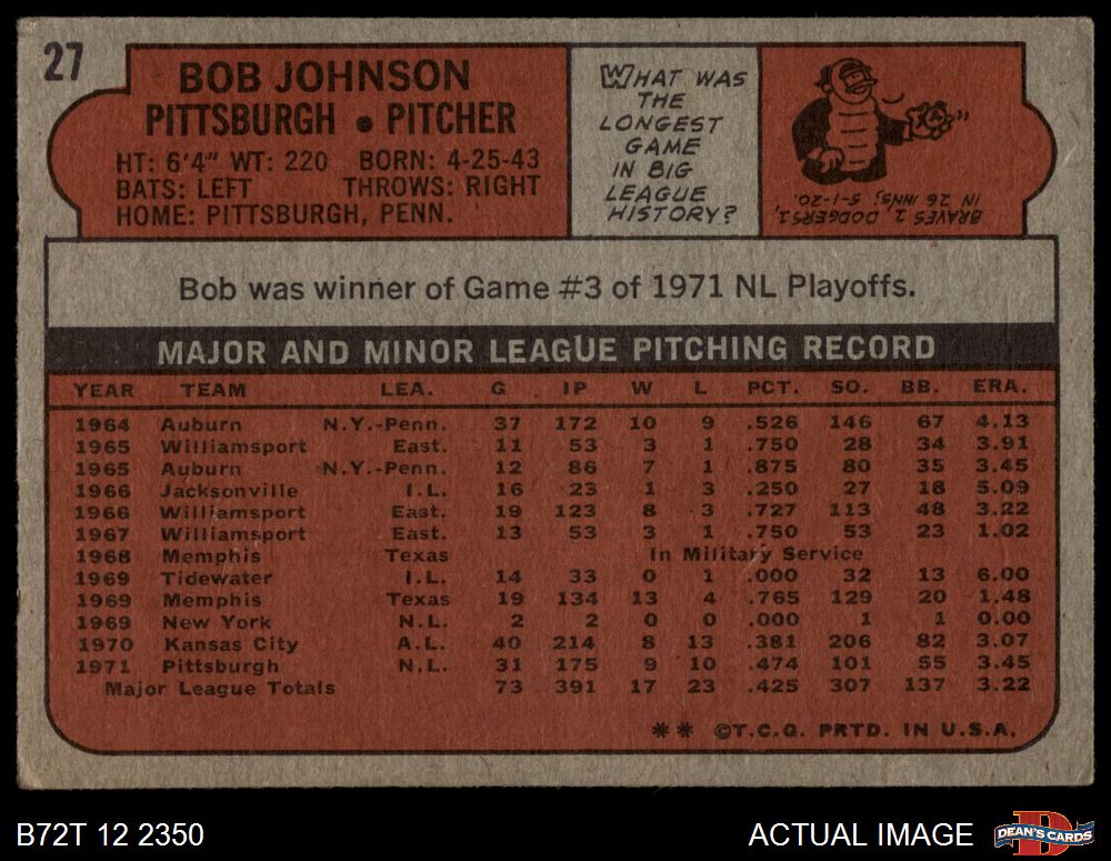 1972 Topps #27 Bob Johnson 2.5 - GD+