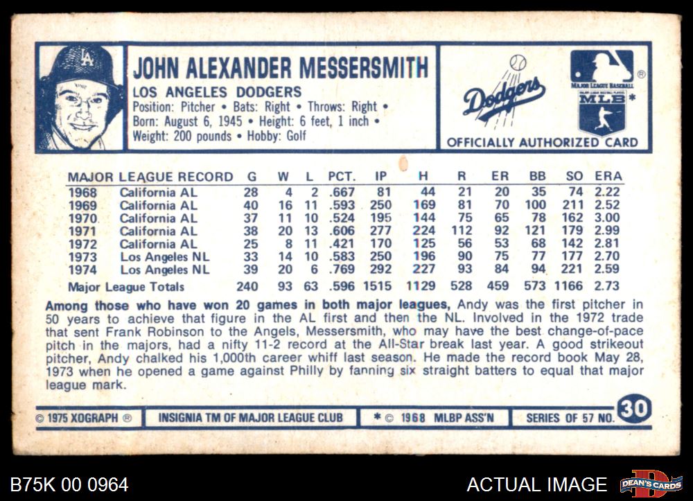 1975 Kellogg's #30 Andy Messersmith 2 - GOOD