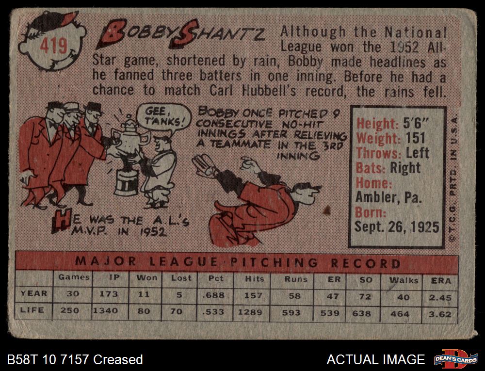 1958 Topps #419 Bobby Shantz 1 - POOR