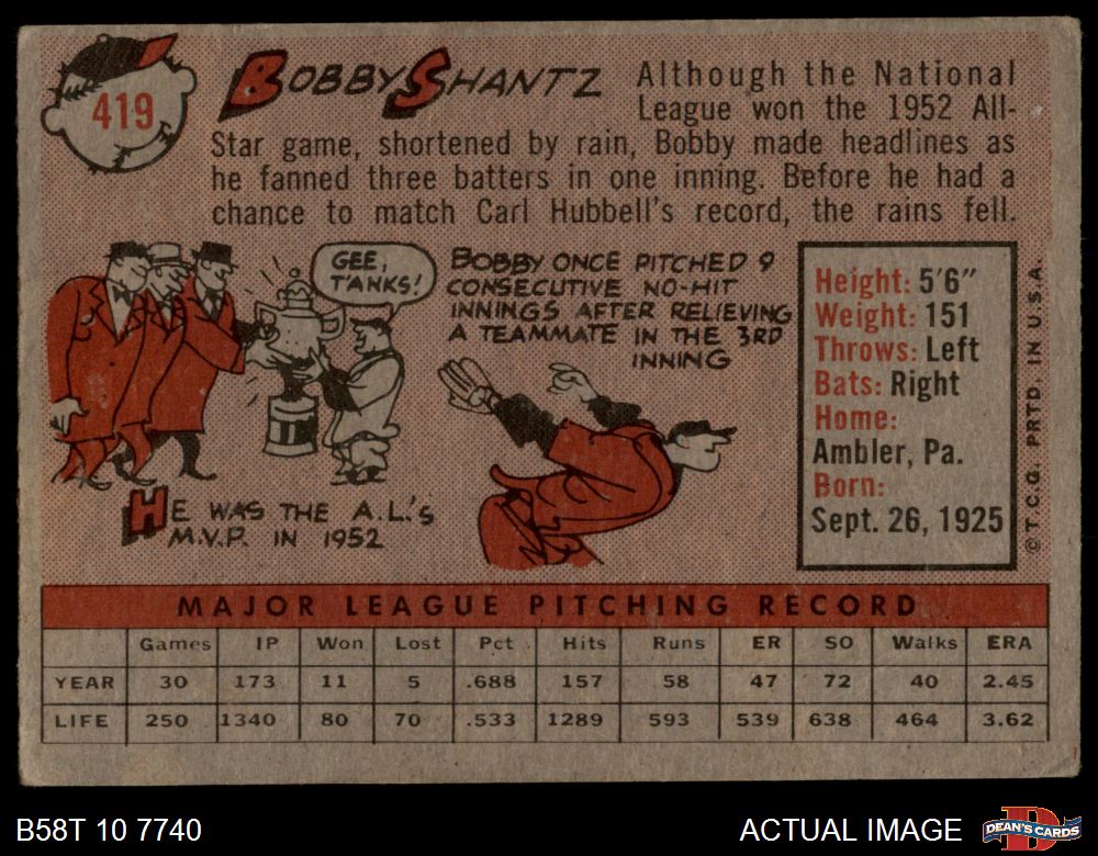 1958 Topps #419 Bobby Shantz 2 - GOOD