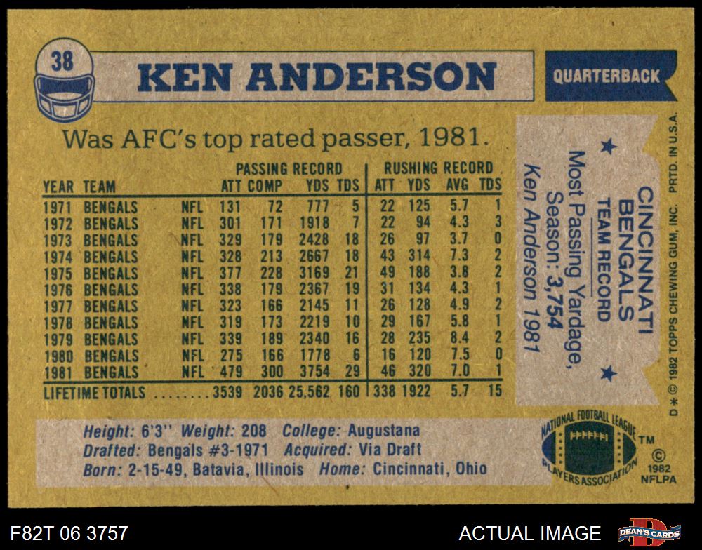 1982 Topps #38 Ken Anderson