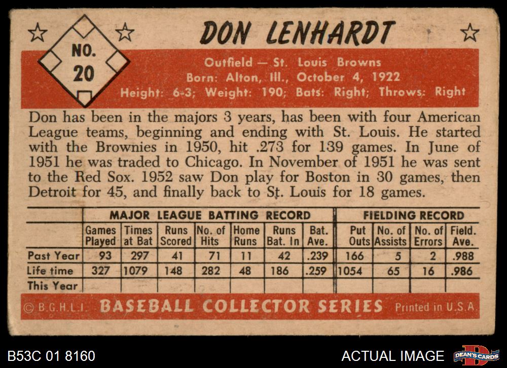 1953 Bowman #20 Don Lenhardt 1 - POOR