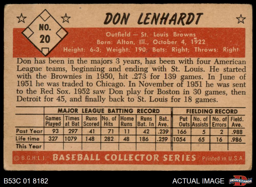 1953 Bowman #20 Don Lenhardt 3 - VG