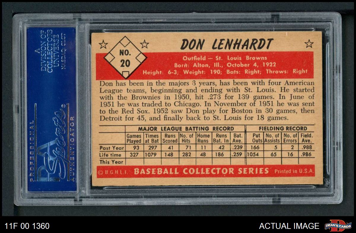 1953 Bowman #20 Don Lenhardt PSA 6 - EX/MT