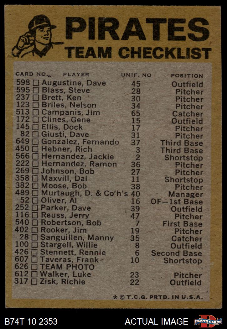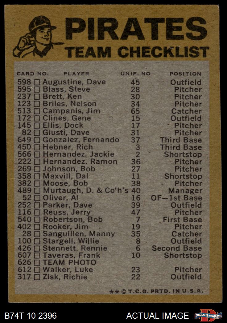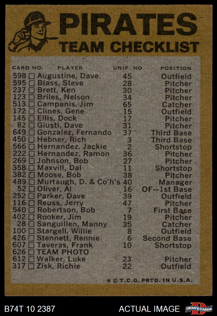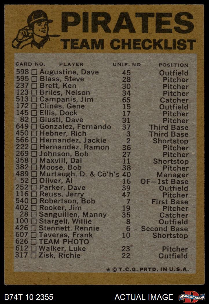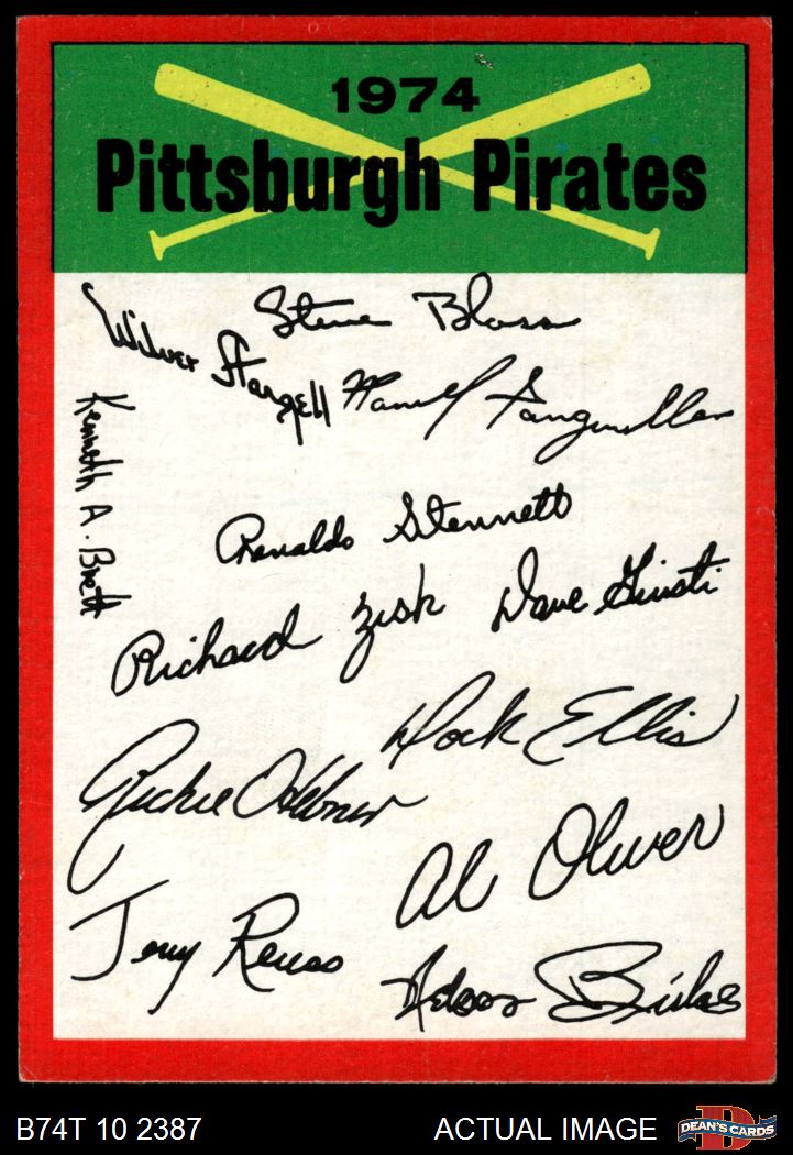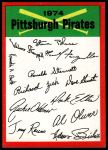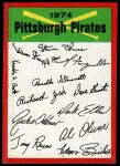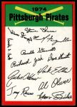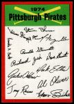 1974 Topps Pittsburgh Pirates Red Team Checklist 5 - EX