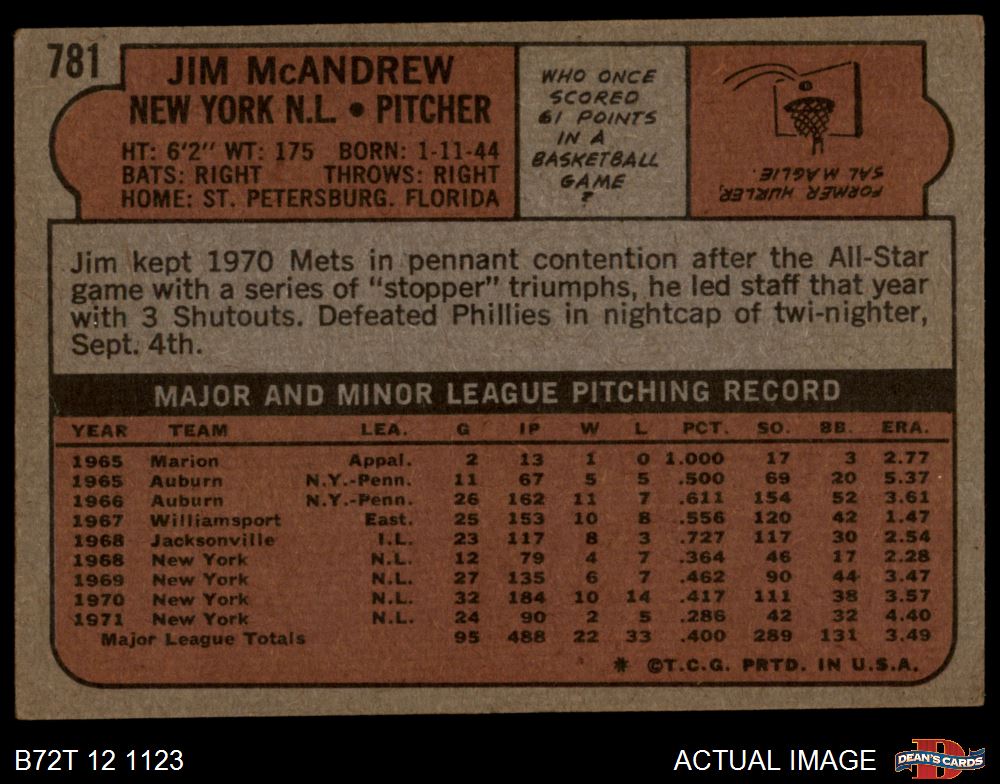 1972 Topps #781 Jim McAndrew 1.5 - FAIR