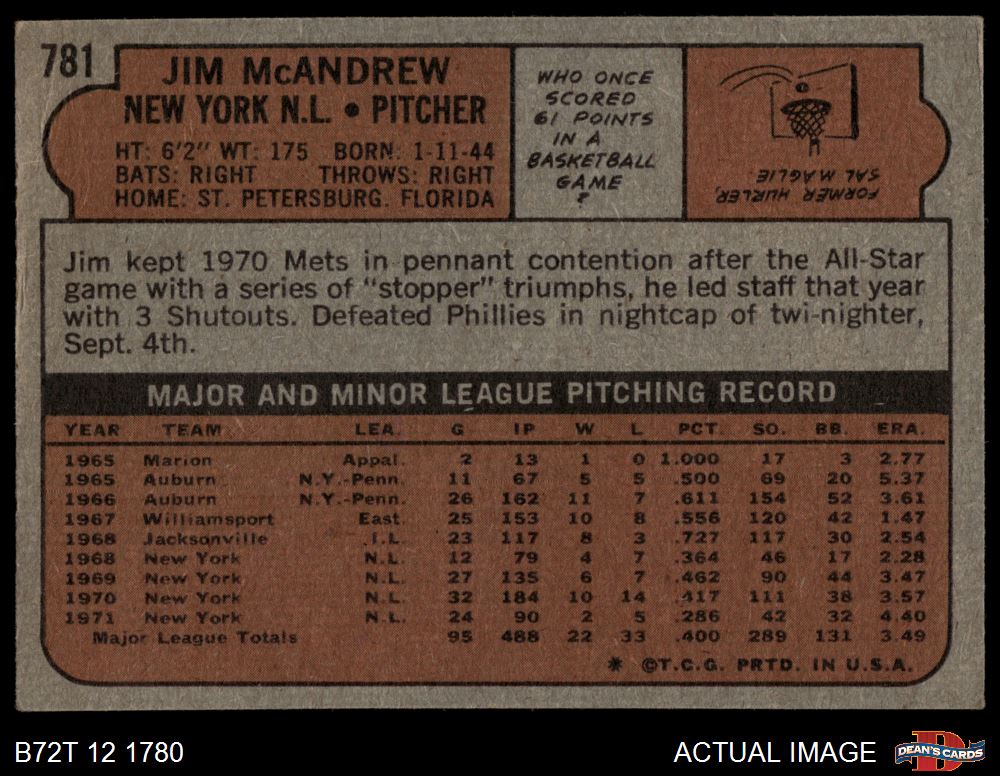 1972 Topps #781 Jim McAndrew 2 - GOOD