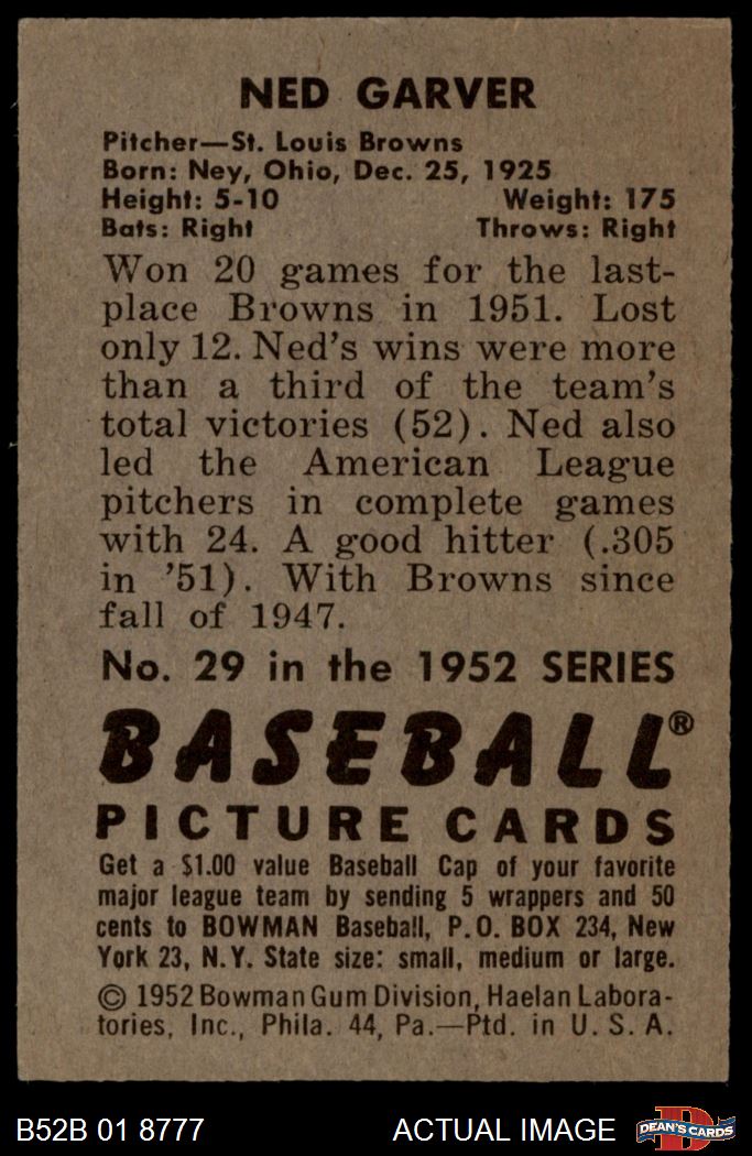 1952 Bowman #29 Ned Garver 4 - VG/EX