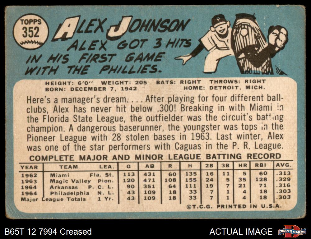 1965 Topps #352 Alex Johnson Front Thumbnail