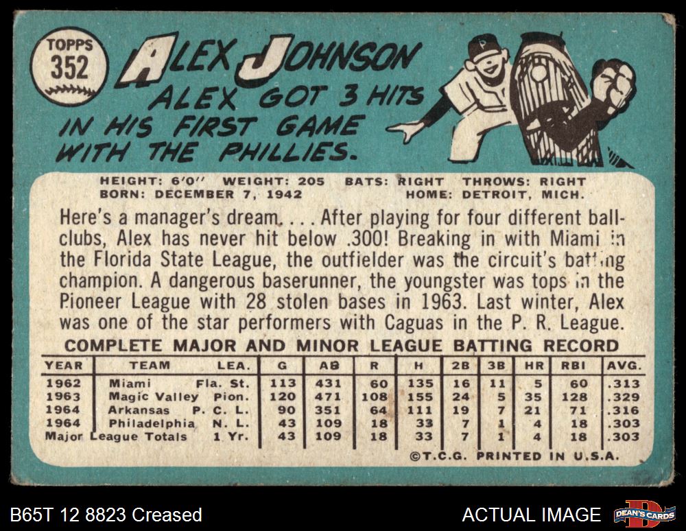 1965 Topps #352 Alex Johnson Front Thumbnail