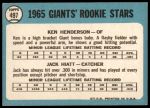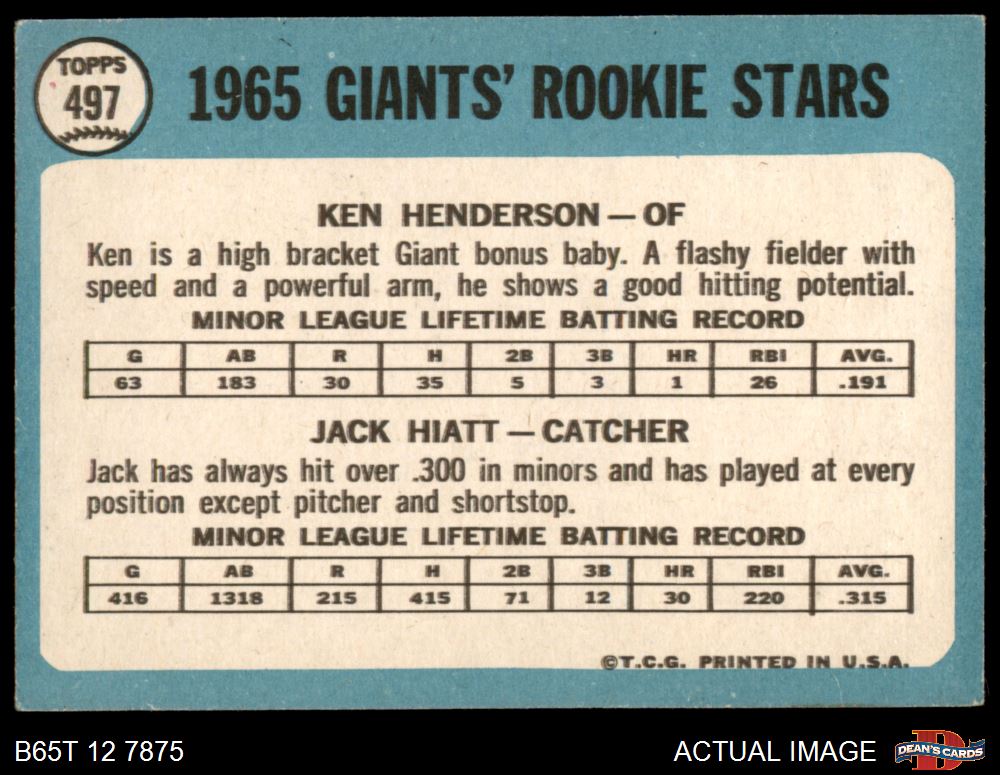 1965 Topps #497 - Ken Henderson / Jack Hiatt Giants Rookies 3 - VG