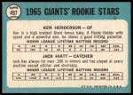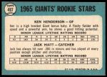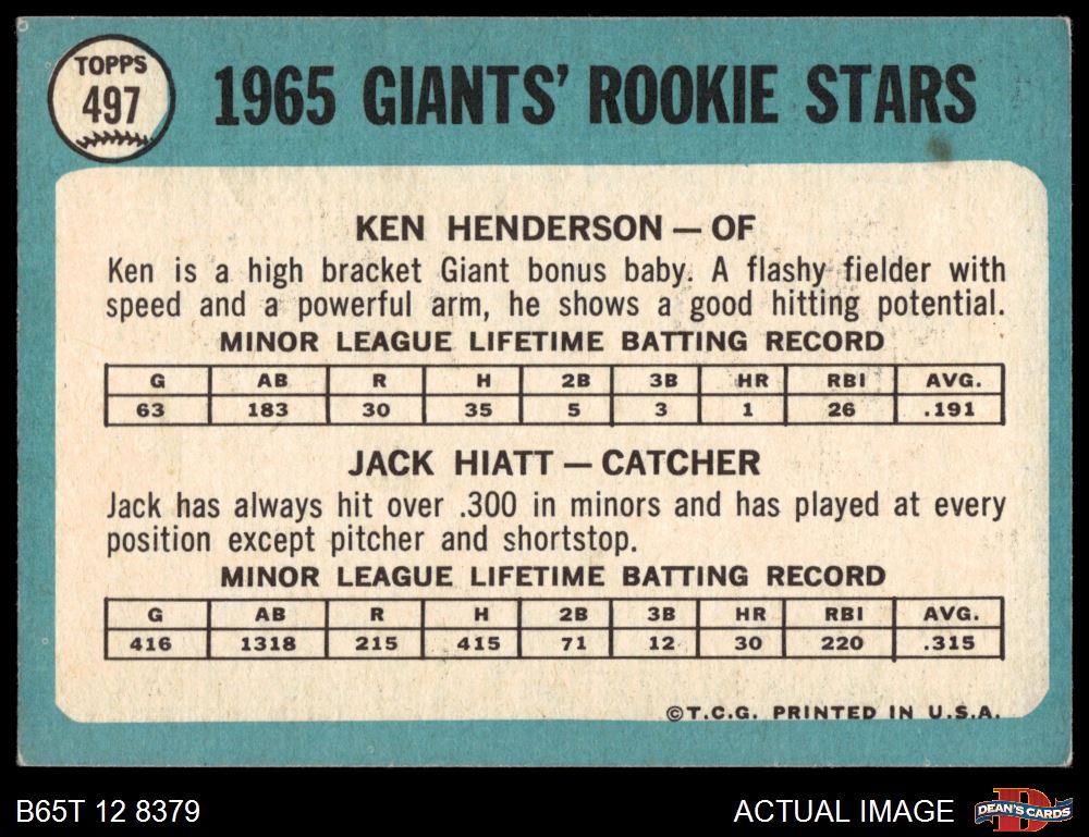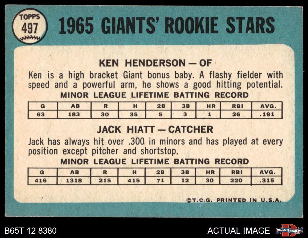 1965 Topps #497 - Ken Henderson / Jack Hiatt Giants Rookies 4 - VG/EX