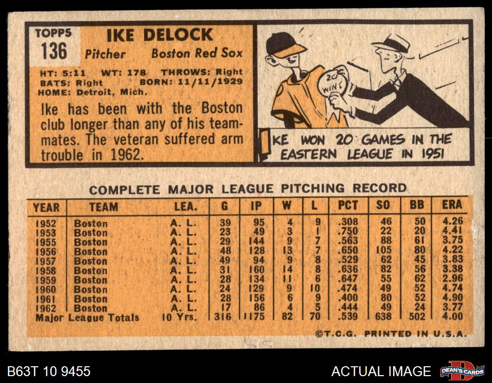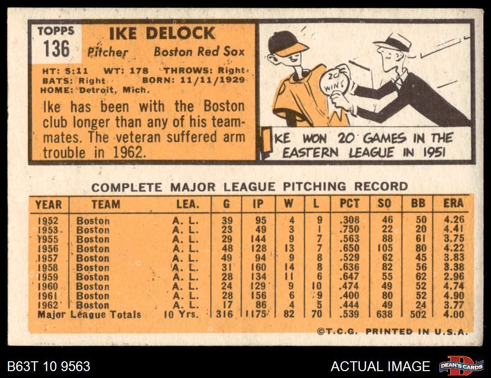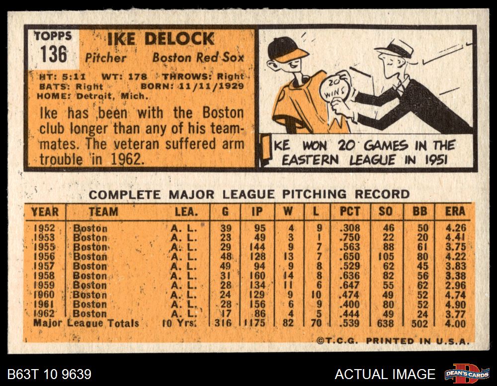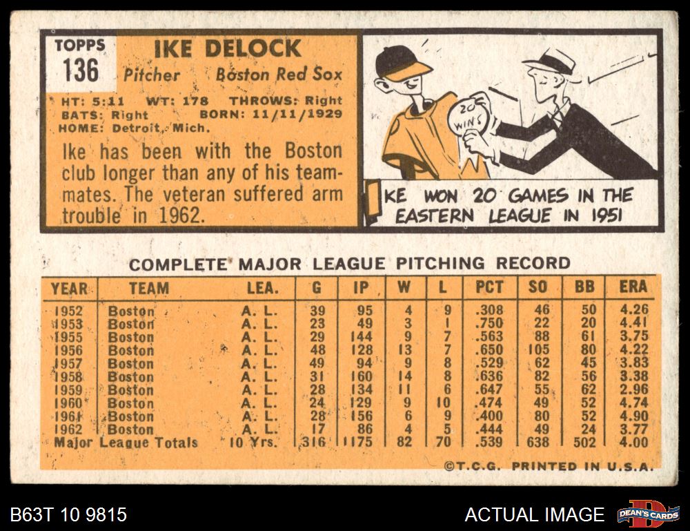 1963 Topps #136 Ike Delock