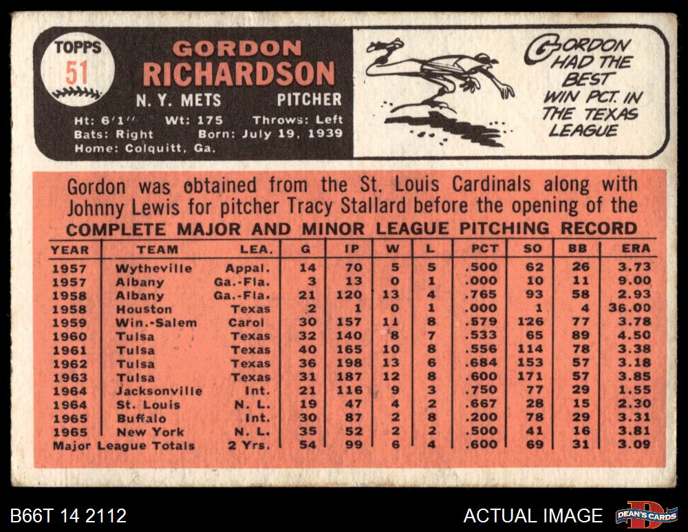 1966 Topps #51 Gordon Richardson