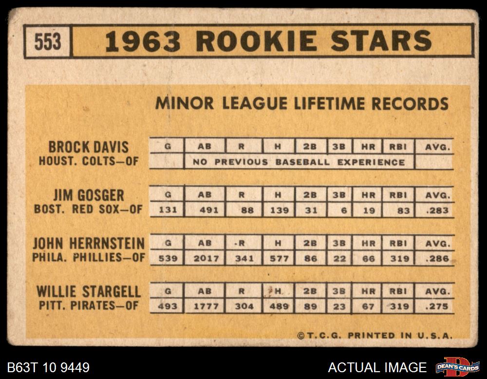 1963 Topps #553 - Willie Stargell / Jim Gosger / Brock Davis / John Herrnstein Rookie Stars 1 - POOR