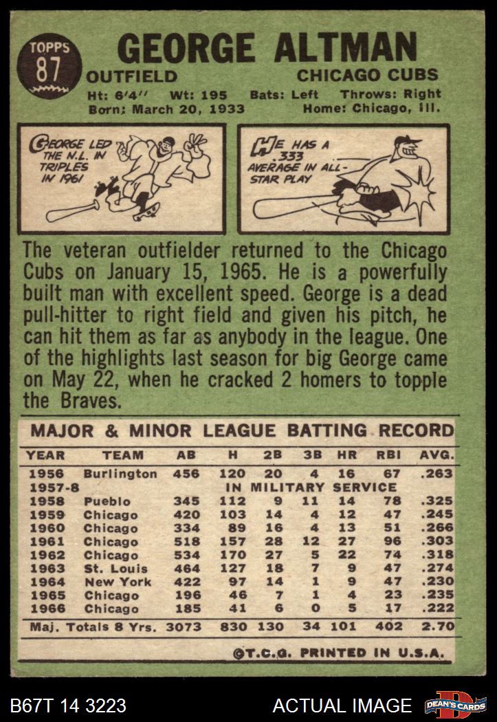 1967 Topps #87 George Altman 4 - VG/EX