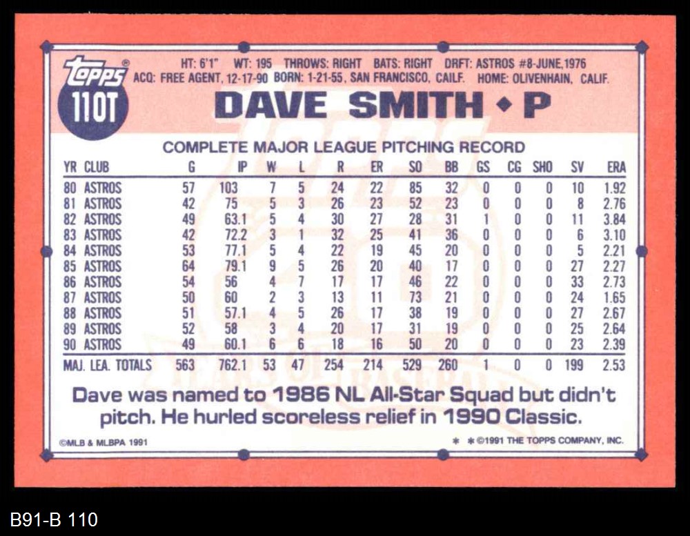 1991 Topps Traded #110 T Dave Smith