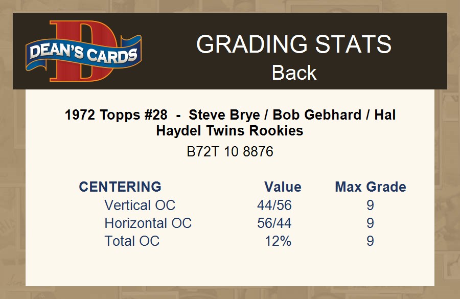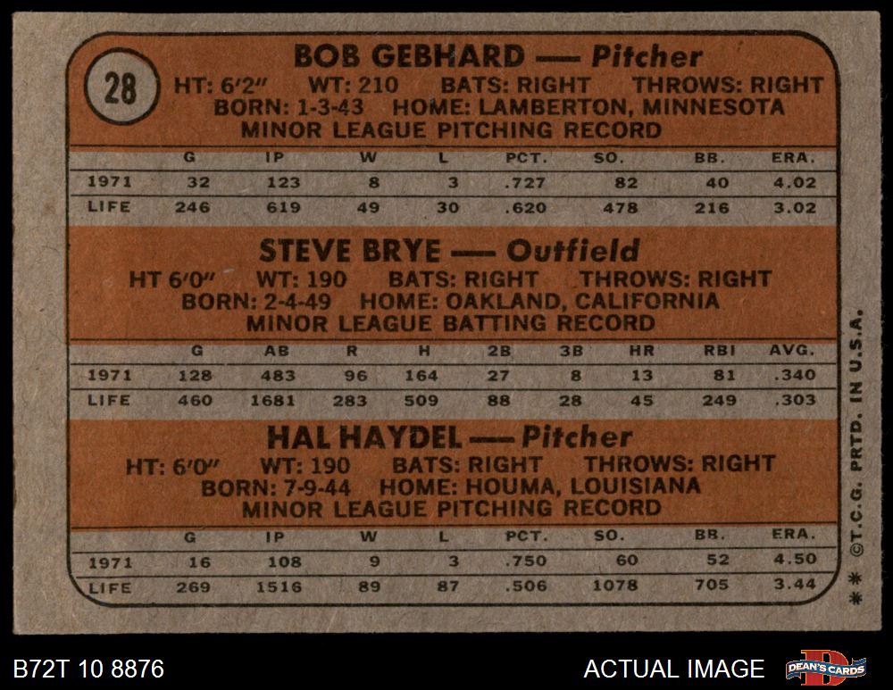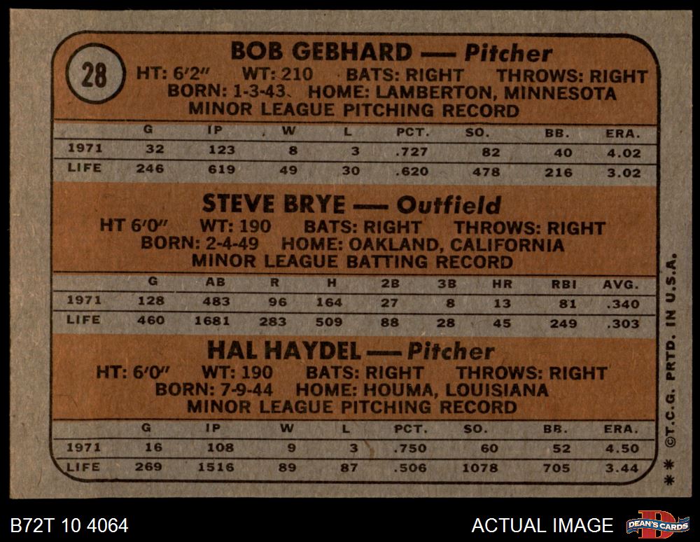 1972 Topps #28 - Steve Brye / Bob Gebhard / Hal Haydel Twins Rookies 5.5 - EX+