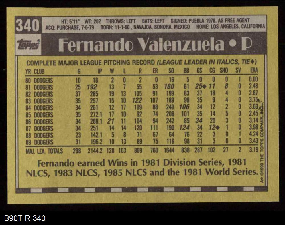 1990 Topps #340 Fernando Valenzuela 8 - NM/MT
