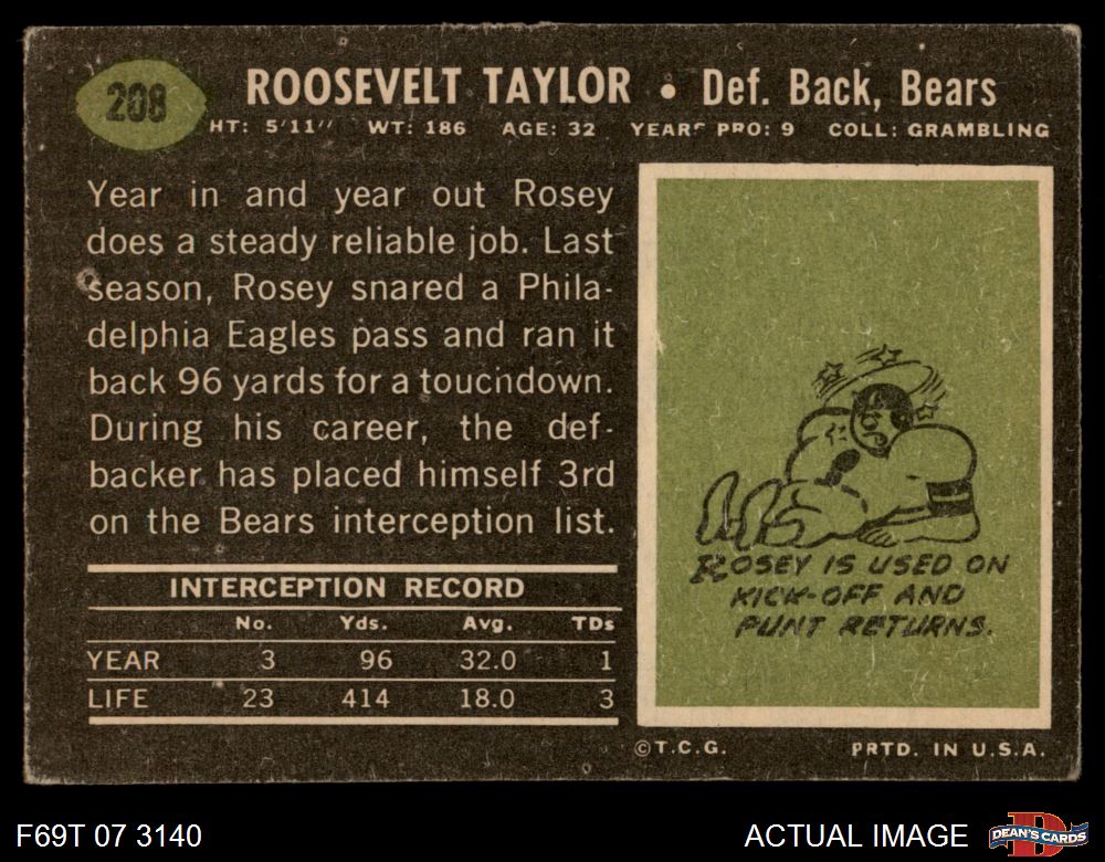 1969 Topps #208 Rosey Taylor 2 - GOOD