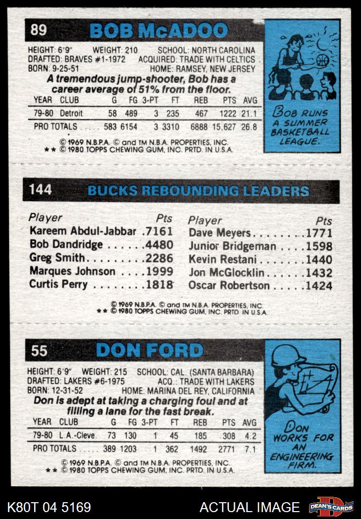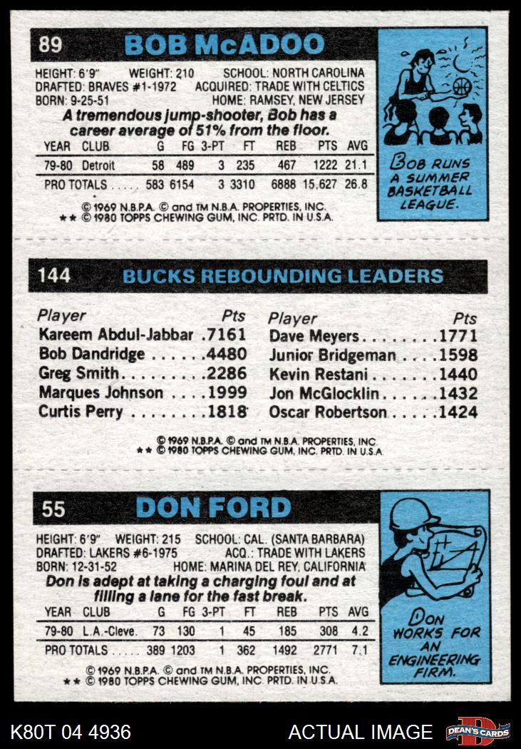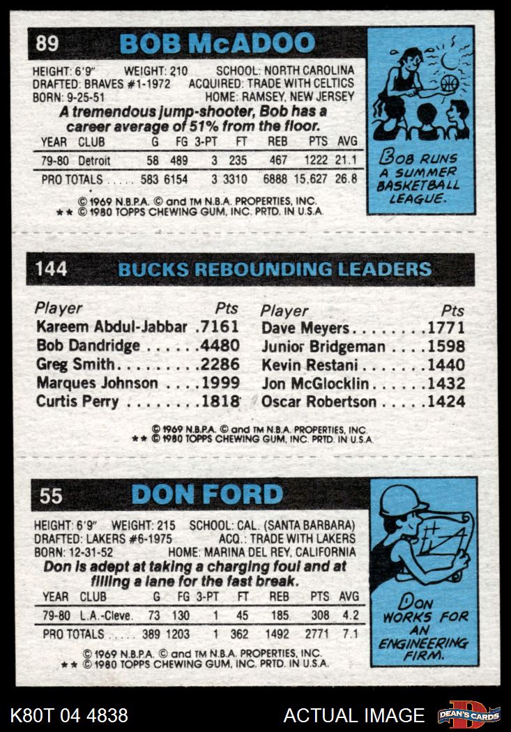 1980 Topps - Don Ford / Marques Johnson / Bob McAdoo 55 / 144 / 89 8 - NM/MT