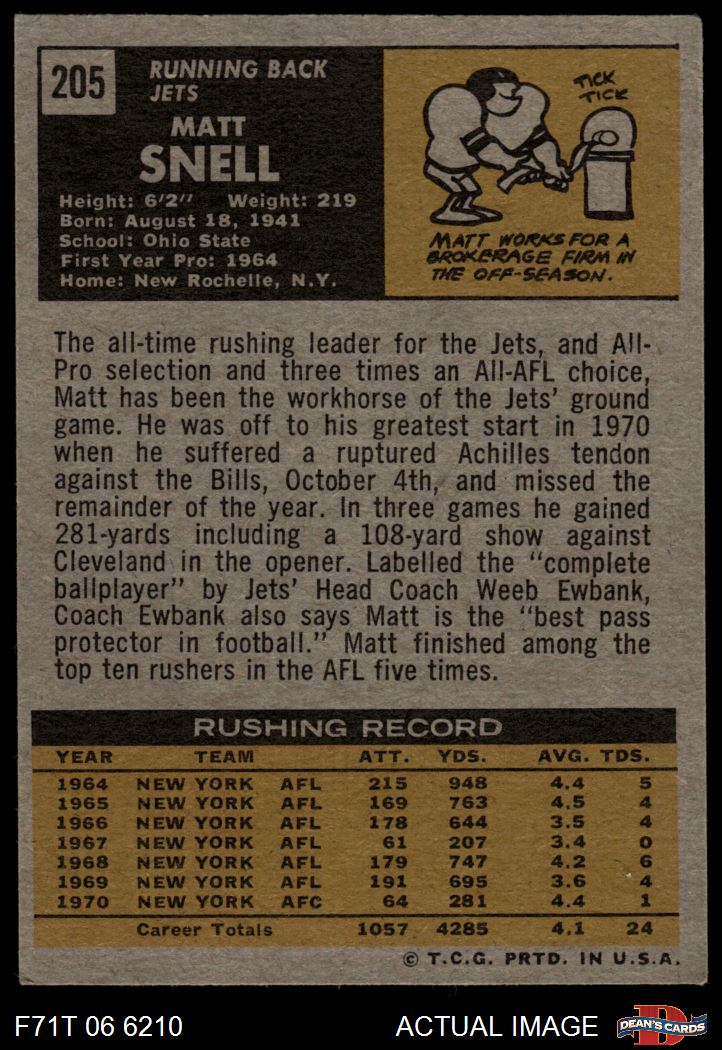 1971 Topps #205 Matt Snell
