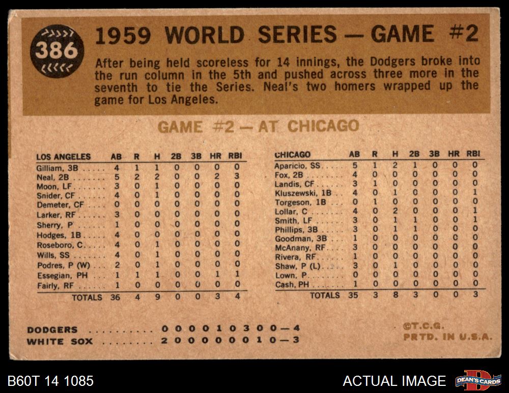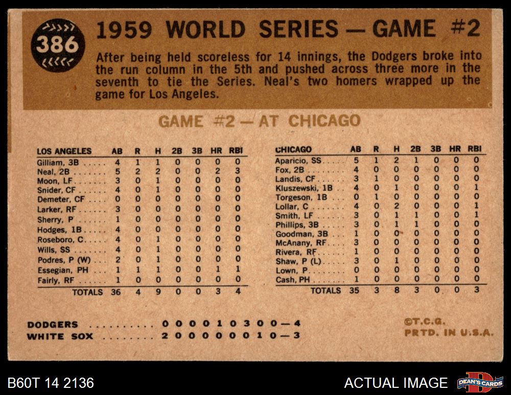 1960 Topps #386 - Charlie Neal 1959 World Series - Game #2 - Neal Belts 2nd Homer 3 - VG
