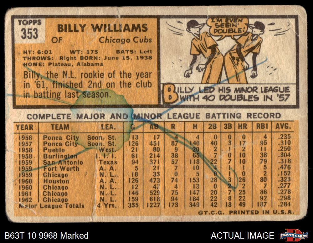 1963 Topps #353 Billy Williams AUTHENTIC