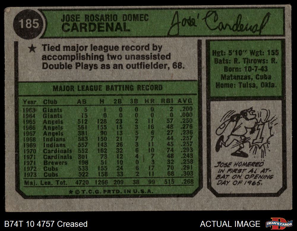 1974 Topps #185 Jose Cardenal 2 - GOOD