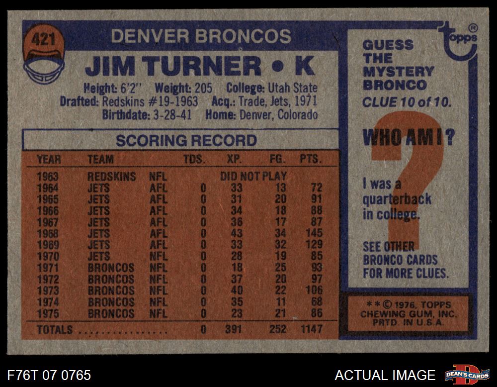1976 Topps #421 Jim Turner 7 - NM