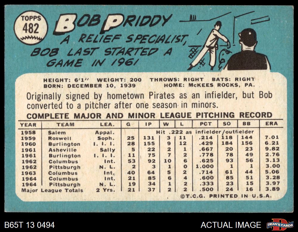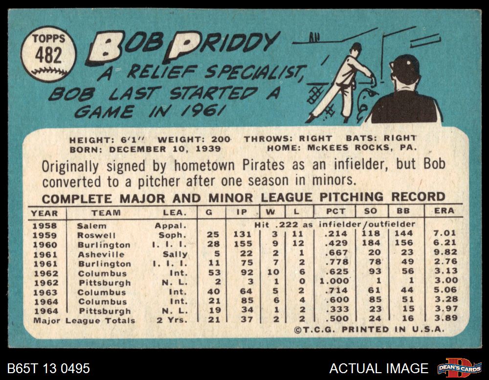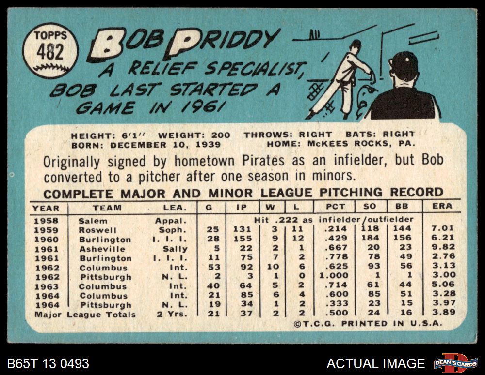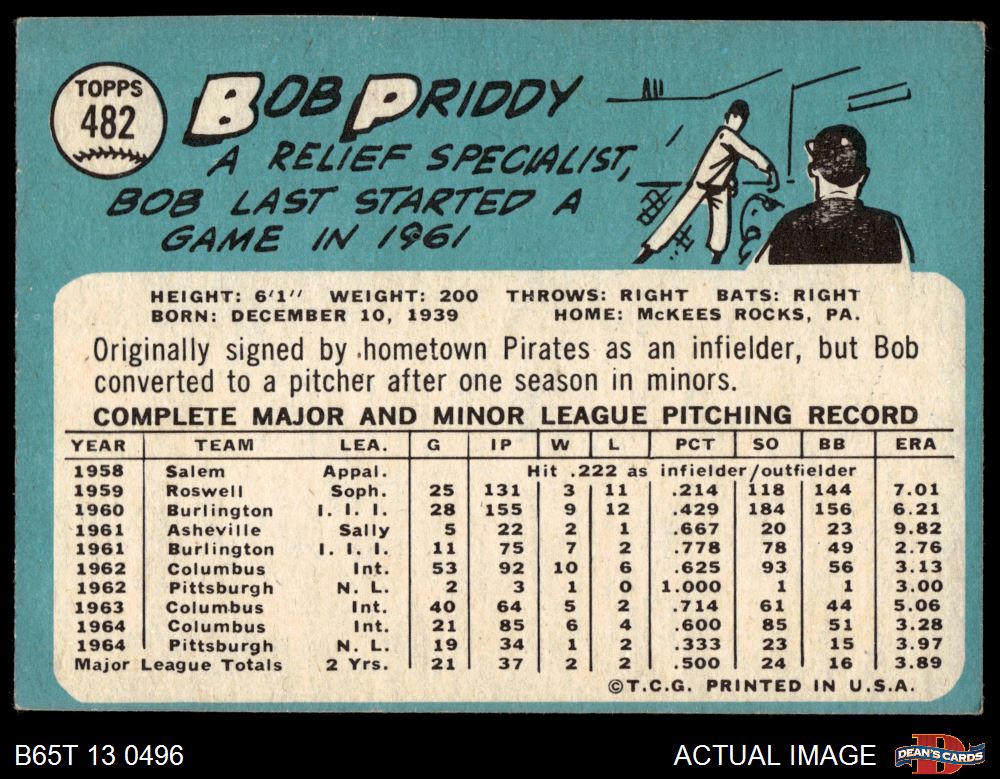 1965 Topps #482 Bob Priddy
