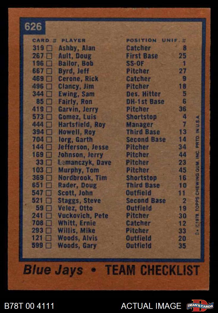 1978 Topps #626 Blue Jays Team Checklist 4 - VG/EX