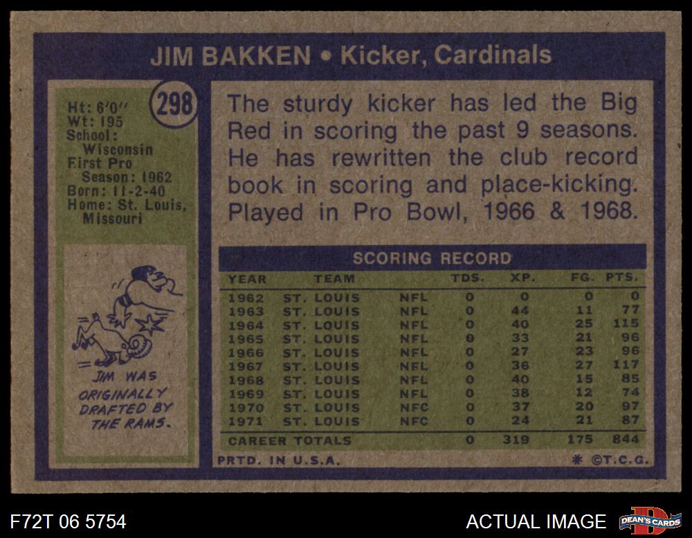 1972 Topps #298 Jim Bakken 8 - NM/MT